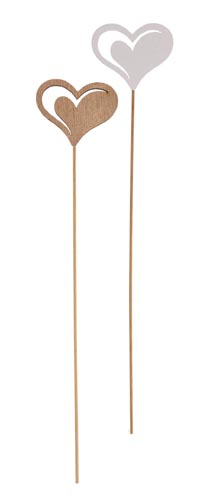 Fa szív pálcikán, fehér és natúr, ø 6 x 25 cm