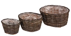 Ratán virágkosár - ovális, natúr, 3 darabos készlet
