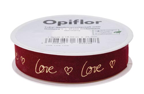 Szalag 'Love', piros, 1 darab, 25 mm x 18 m
