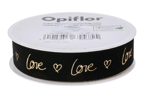 211514 Szalag 'Love', fekete, 1 darab, 25 mm x 18 m