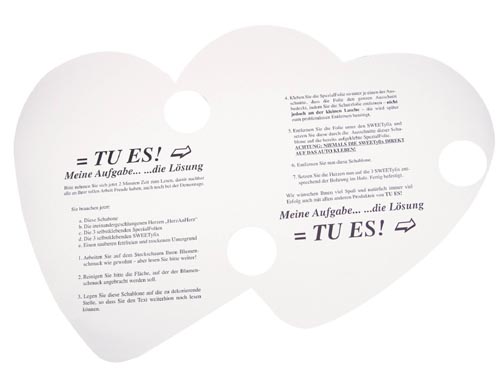 Duplaszív forma. Stabil fatalapzaton, a hátoldalon lakkvédő szivacspárnával. Öntapadós autólakklvédő fólia és Sweetyfix rögzítő.