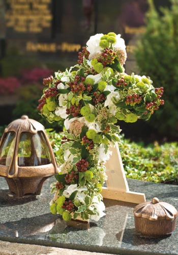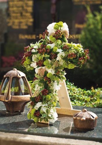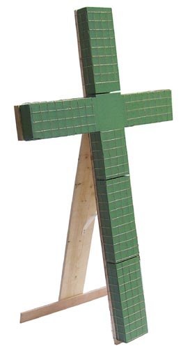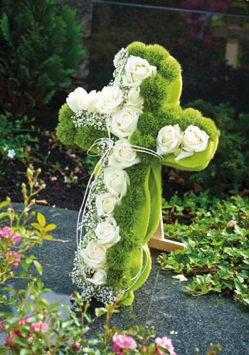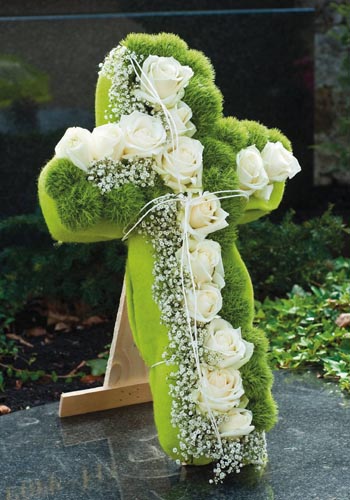 Drótkabátos kereszt, keskeny felülete ellenére is biztosan rögzíthetők a virágok. Stabil fatalapzat.