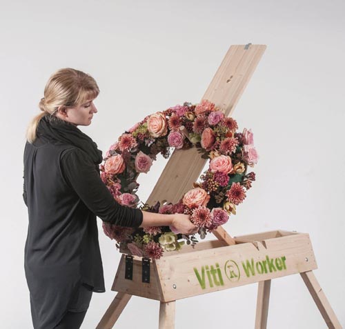 Egy optimális segédeszköz koporsó csokrok és díszek kötéséhez. Különböző méretű koszorúkhoz alkalmas, 2 fokozatra dönthető. A koszorúka rögzítése egy külön stabilizátorral történik. Összecsukott állapotban az elkészült csokrok szállítására kíválóan alkalmas. Max méret 2 m.