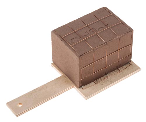 A legkedvezőbb és legkedveltebb nedves és száraz oázistégla 1/3 méretben. Dróthálóval körbevonva áll egy stabil faalapzaton. A praktikus nyél 11 cm, kitünően lehet vele transzportálni és a benne található lyukkal egyszerűen lehet rögzíteni.