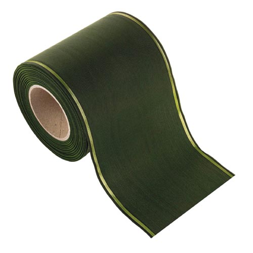 Morié szalag, keskeny arany szegéllyel, fenyőzöld 100 mm x 25 m