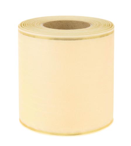 Morié szalag, keskeny arany szegéllyel, champagne 100 mm x 25 m