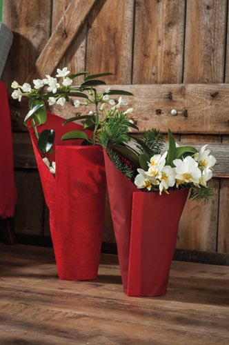 Szögletes, 2 részből álló - vlies és fólia (fólia egyik oldala fényes a másik matt), ideális kaspónak vagy virágmandzsettának.