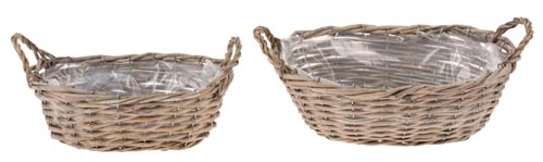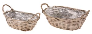 Vesszőkosár, szürke - fehér meszes, 26 x 17 x 9 cm