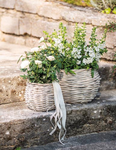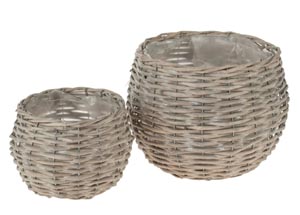Vesszőkosár, szürke - fehér meszes, 2 részes, 2 db, ø 17 x 15 cm, ø 23 x 21 cm