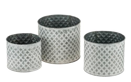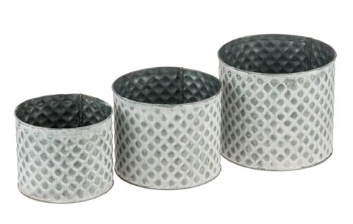 Bádog kaspó, világos szürke, 3 részes, 1 db, ø 14 x 11, 5, ø 16 x 13, 5, ø 18 x 15, 5 cm