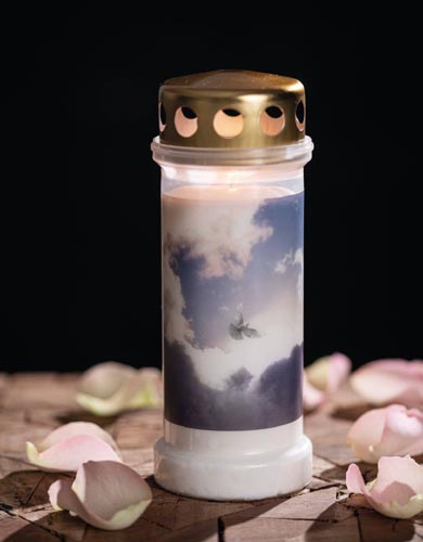 Sírlámpás, fehér, ég mintázattal, ø 6, 7 x 17, 3 cm