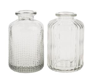 Üveg, nyílás ø 2, 5 cm, ø 6 x 10 cm, bordás vagy halgerinc