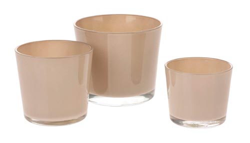 Üveg kaspó, kőbeige, ø 11, 5 x 11 cm