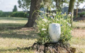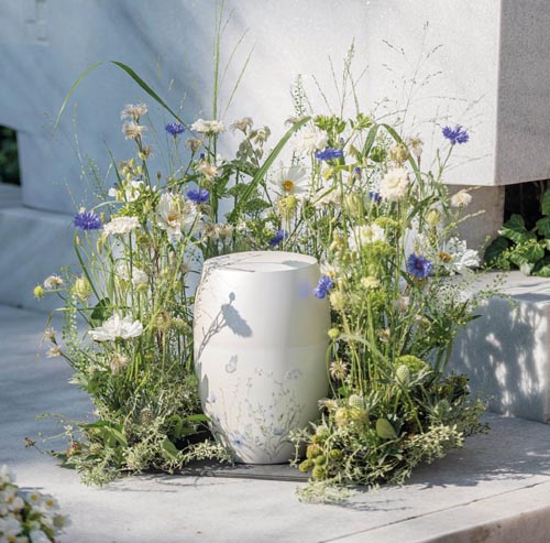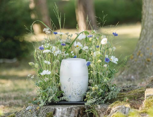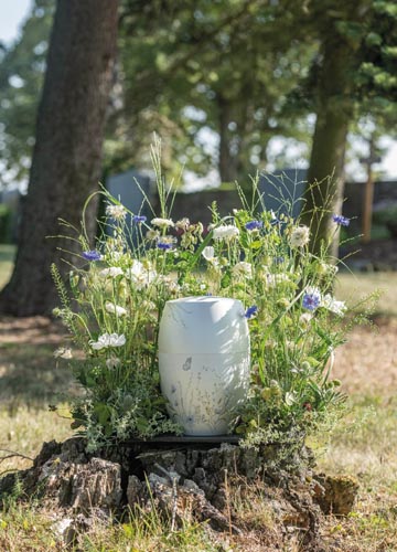 Fa alapon, fekete oázis. Ideális urna díszítéshez, az urna elejét nem takarja el a virág, mivel a koszorú nem teljes kör.