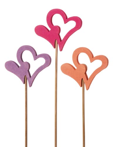 Fa szív pálcikán, narancs, pink, lila, ø 6 x 25 cm