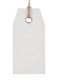 Kartonból, 13 cm hosszú akasztón, szegecselt fűzőlyukkal..