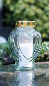 Sírlámpás - szív forma, átlátszó, 11, 5 x 10 x 18 cm