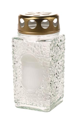 Üveg sírmécses, átlátszó, szögletes, 6 x 6 x 13, 5 cm