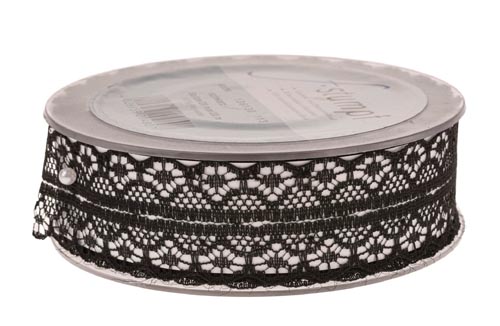 Szalag, csipkemintás, fekete, 1 db, 28 mm x 20 m