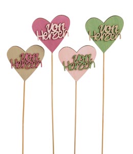 Fa szív pálcikán, rózsaszín, pink, zöld, krém, ø 7 x 31 cm