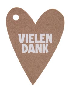 Ajándék kisérő szív - Vielen Dank!, natúr, 52x70mm, 20 db