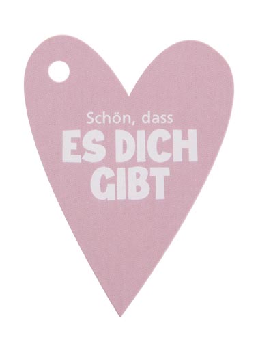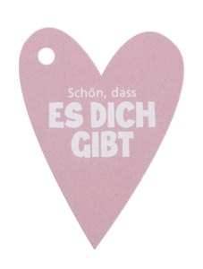 Ajándék kisérő szív - Schön, dass es dich gibt, rózsaszín, 52x70mm, 20 db