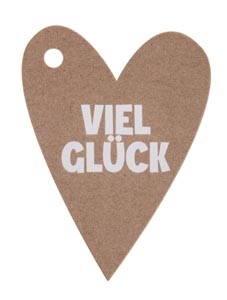 Ajándék kisérő szív - Viel Glück, natúr, 52x70mm, 20 db