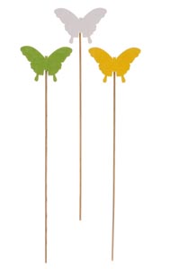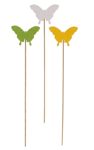Fa pillangó pálcikán, fehér, sárga, zöld, ø 6 x 25 cm