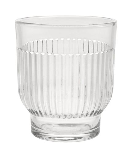 Átlátszó üveg gyertyatartó, bordázott mintával.