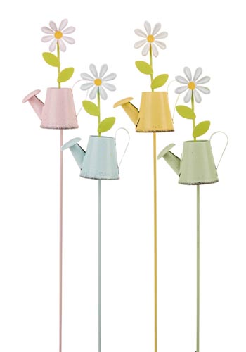 Fém kanna virággal, 4 pasztell színben