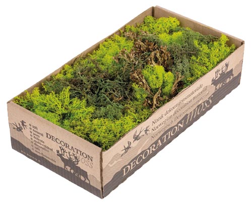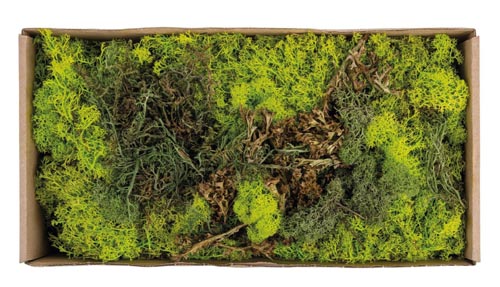 Különböző natúr és zöld tónusokban. Különböző mohát tartalmaz.