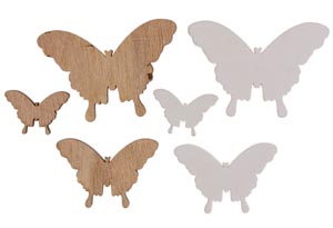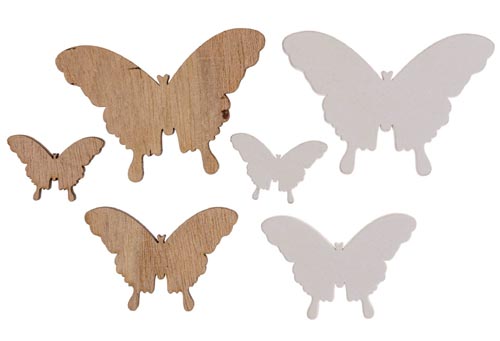 Fa pillangók, 18 db, fehér és natúr, ø 3 - 7 cm
