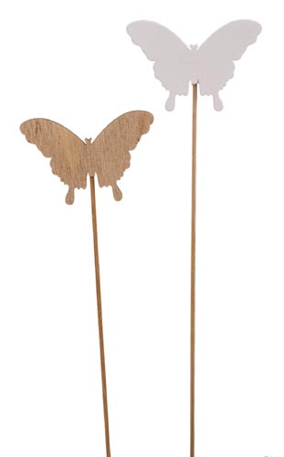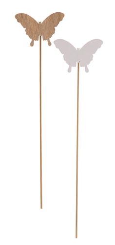 Fa pillangó pálcikán, fehér és natúr, ø 6 x 25 cm