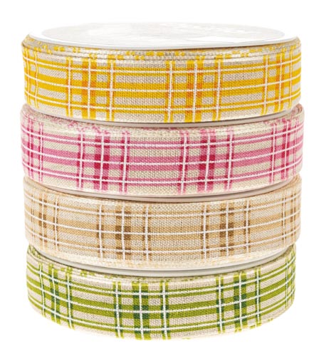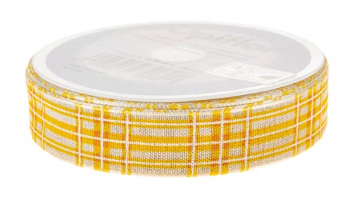 Textilszalag - kockás, sárga, 25 mm x 18 m
