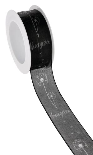 Gyászszalag- 'Unvergessen' felirattal, fekete, 40 mm x 15 m