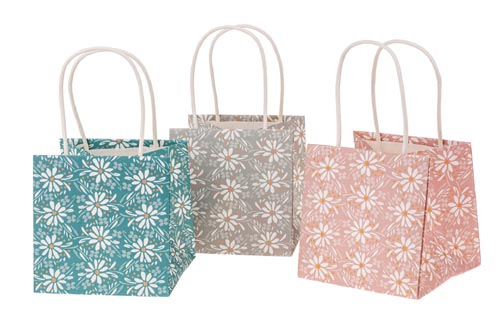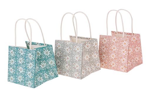 Papírzacskó virágos, rózsaszín, kék, szürke, 10, 5 x 10, 5 x 10, 5 cm