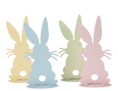 Fém nyuszifigura, pasztell színek, 10 x 5 x 20 cm