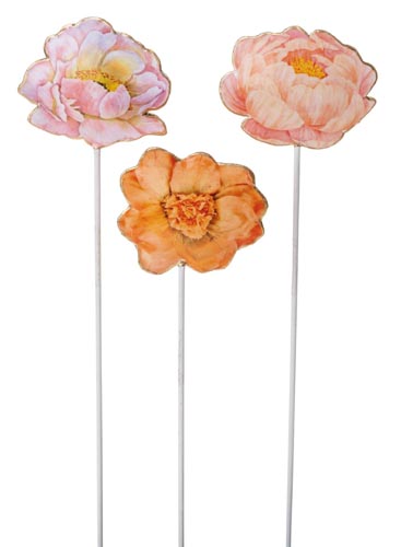 Fém virág. fapálcán, színes, 6, 5 x 6, 5 - 32 cm
