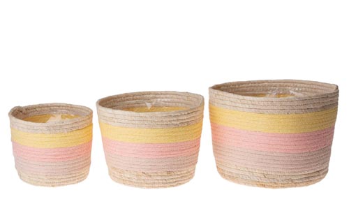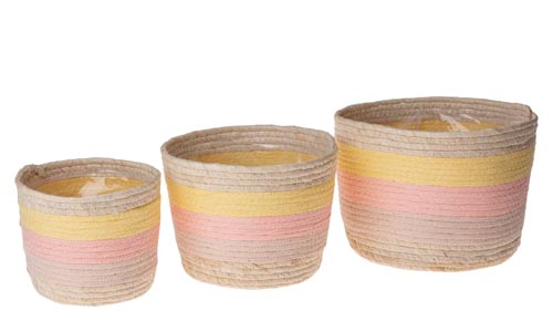 Fonott tengerifűből készült kosár. Belül fóliával bélelt. Méretek: ø 18 x 15 cm, ø 23 x 18 cm és ø 28 x 20 cm.