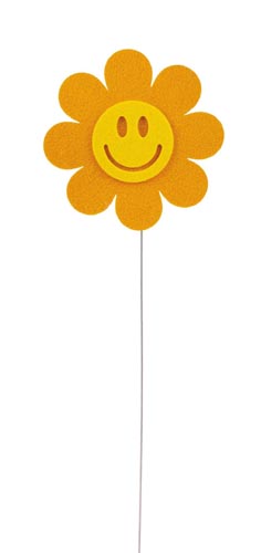 Filc mosolygós virágarc, pálcikán, sárga, ø 13, 5 x 40 cm