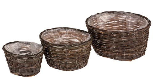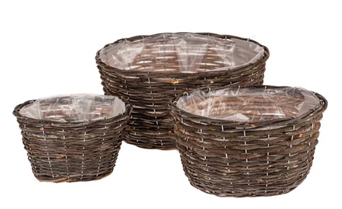 Ratán virágkosár - ovális, natúr, 3 darabos készlet
