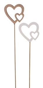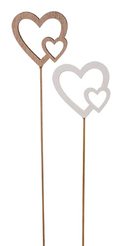 Fa szívek pálcikán, natúr - fehér, ø 6 x 25 cm