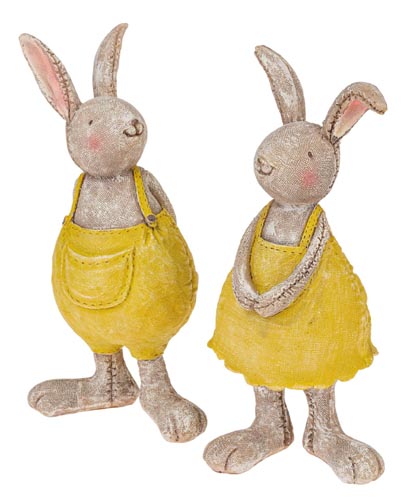 Dekoratív, nyúl alakú figura polirezinből. Két különböző. Méretek: 8 x 6 x 18 cm, 9 x 7 x 18 cm.