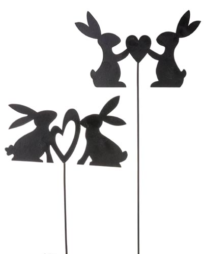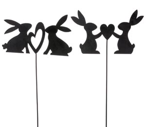 Húsvéti dekoráció - nyuszipár szívvel, pálcikán, fekete, ø 15 x 42 cm