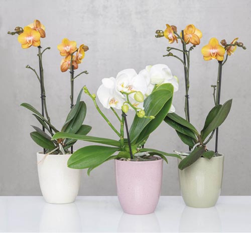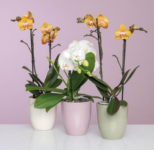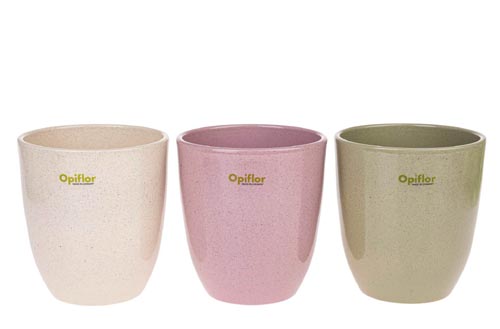 Orchideacserép beépített kerámia bordával a pangás megakadályozása érdekében, pettyes kőhatású mázzal. 3 féle színben kapható: bézs, rózsaszín, kivi.